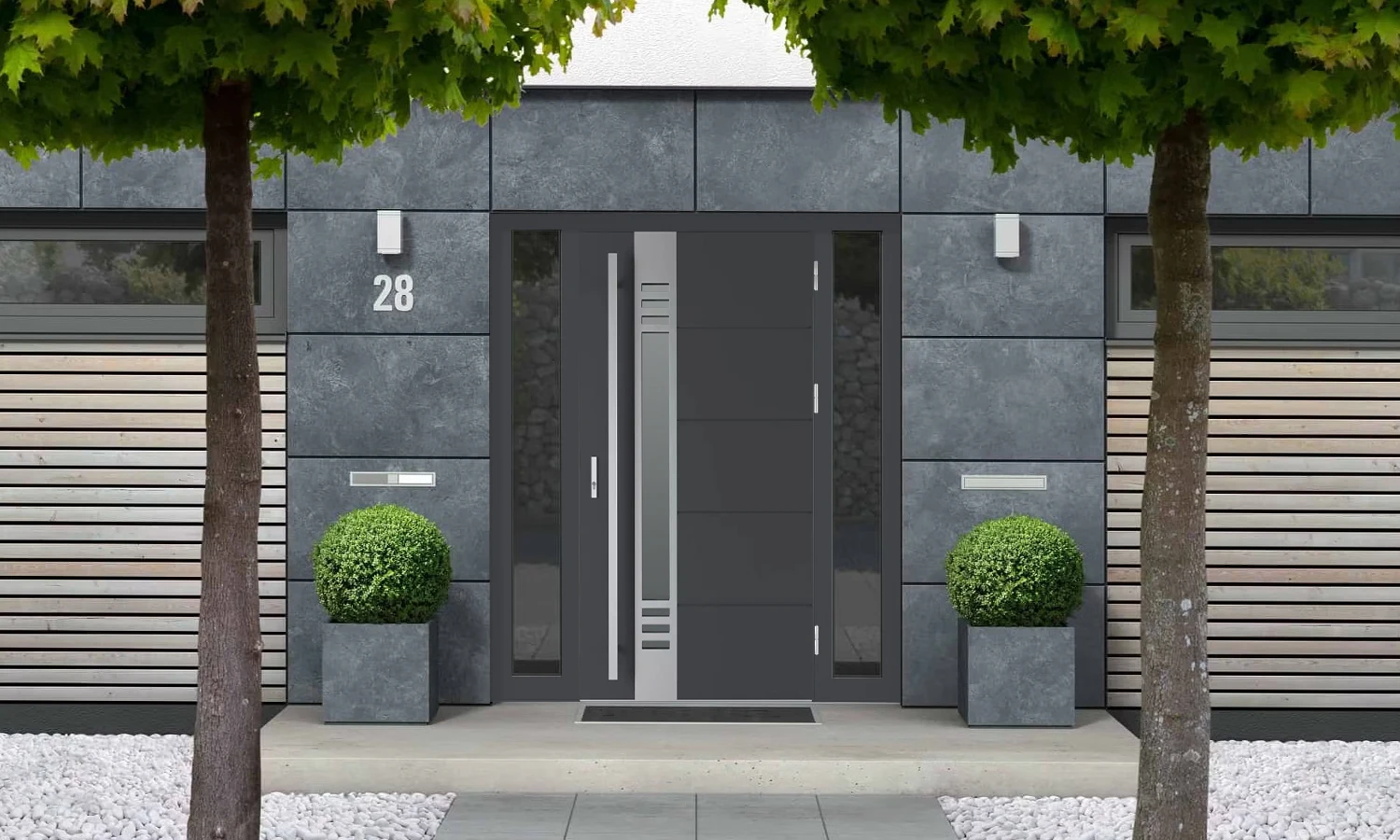 Drzwi model Selters 7 łączą nowoczesny design z wytrzymałością, oferując estetyczne wykończenie. Są wykonane z ocynkowanej blachy stalowej z okleiną PCV, co zapewnia odporność na warunki atmosferyczne i promieniowanie UV, gwarantując długotrwałe użytkowanie.